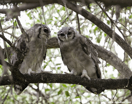 1. Northern White-faced Owl - Ptilopsis leucotis dengan ciri-ciri morph light : Piringan wajah adalah berwarna keputihan, dengan pelek kehitaman lebar. Telinga-jumbai panjang, sering dengan tips kehitaman. Mata bervariasi dari dalam amber kuning ke oranye dan tagihan kekuningan-tanduk.